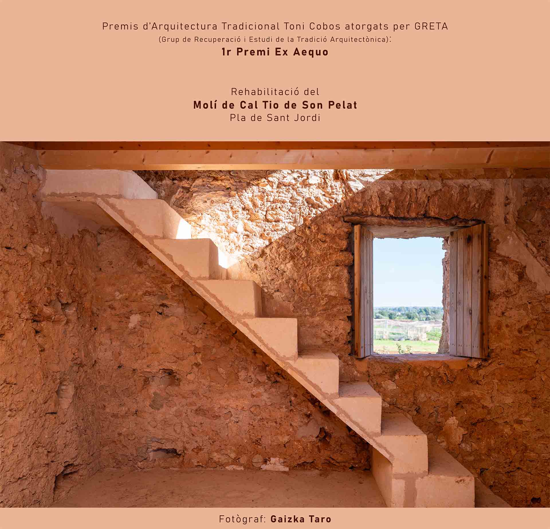1er Premi Ex Aequo dels Premis d’Arquitectura Tradicional Toni Cobos atorgats per GRETA en la categoria de Grup de Recuperació i Estudi de la Tradició Arquitectònica.