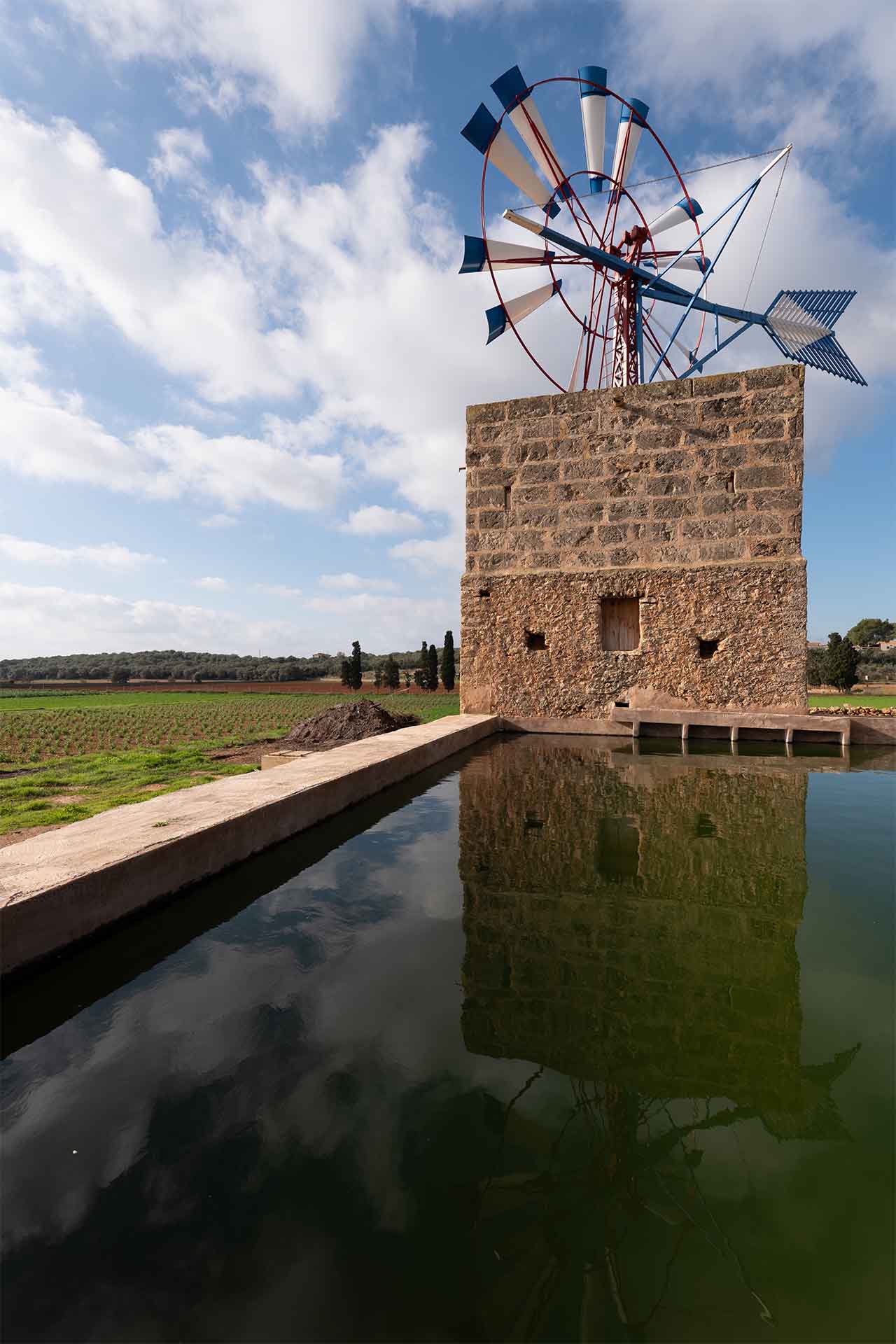Hi havia prop de 1.400 molins funcionant i, ara, tot aquest passat agrícola es va perdent. En aquest projecte, subvencionat pel Consell de Mallorca, s’ha pogut recuperar l’essència del passat i el potencial agrícola i patrimonial, perquè encara hi ha un pagès que conrea aquestes terres i utilitza el safareig cada dia per a regar els seus conreus.